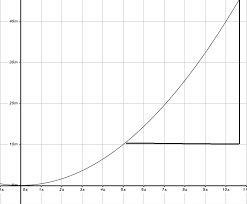 Wanneer zo'n grafiek afbuigt dan kan je nog steeds de gemiddelde snelheid berekenen. Je pakt weer twee punten en berekend daar de gemiddelde snelheid van. Je deelt afstand door de tijd. Stel een auto remt, tijdens het remmen legt die 500 meter af in 30 seconden.